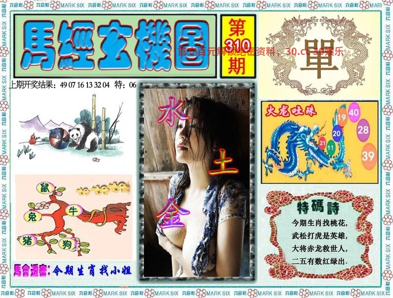 310期 | 猴马羊虎 | 开:虎16 |